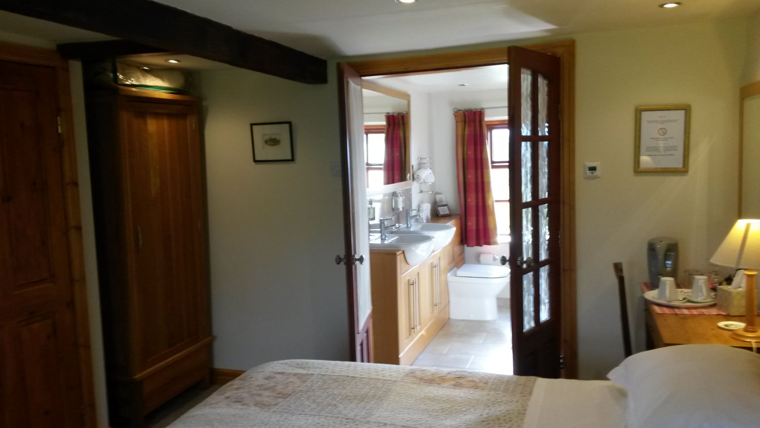 The ensuite bathroom has shower over bath and a 'loo-with-a-view' of the fells behind.